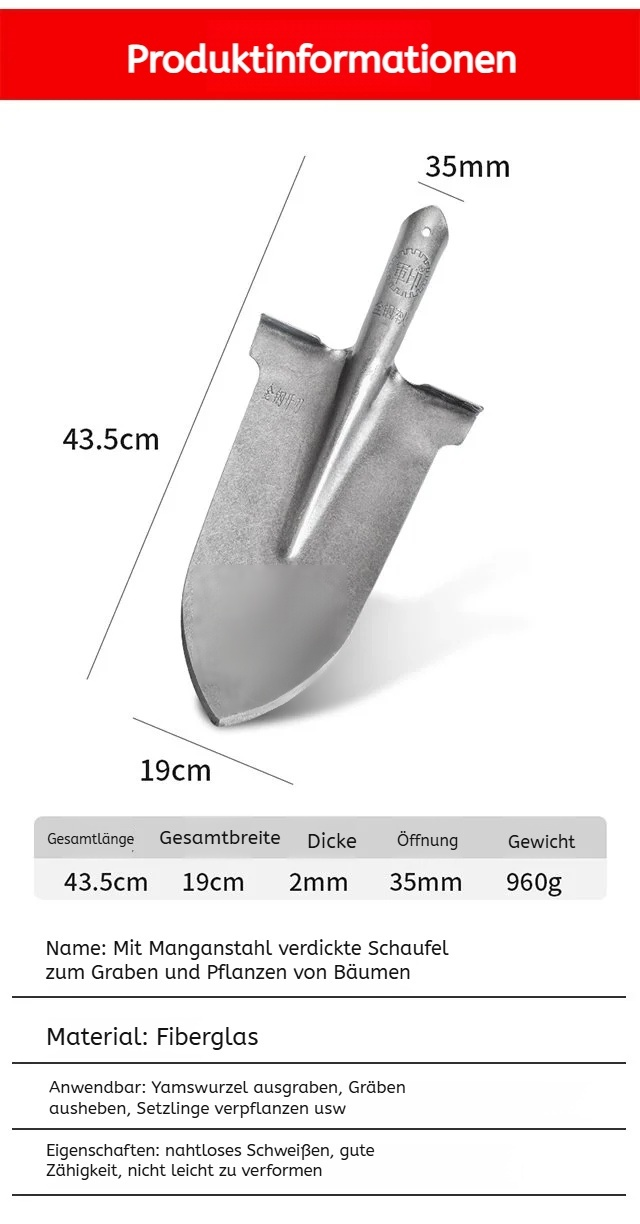 Manganstahl verstärkte Pflanzschaufel für Baumgrabungen