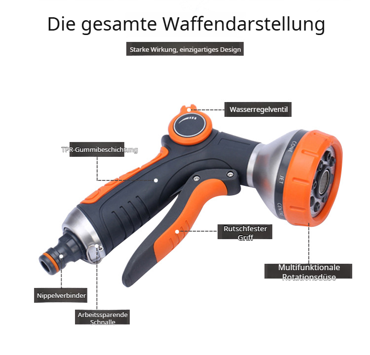 Leichter und einfach zu bedienender Gartenschlauch-Wassersprüher für Autowäsche