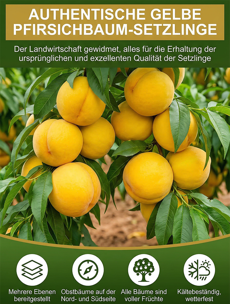 [Fruchtreif in 3 Monaten] Extra große gelbe Pfirsichsetzlinge, Gedeiht prächtig auf dem Balkon, im Topf oder im Garten.